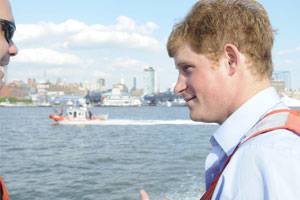 Prince Harry enjoys a ride onboard a Coast Guard 45 ft medium response boat from Station New York during a tour near the Statue of Liberty in New York Harbor May 30, 2009. After a polo match on Governors Island, the Coast Guard boat crew took the prince on a tour of New York Harbor, ending on the Coast Guard Cutter Katherine Walker, where he crossed to the USS Intrepid in Manhattan.