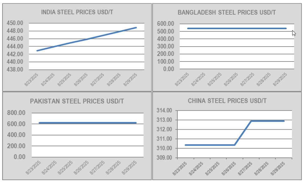 “Currencies also added their own spicy theatre to the markets this week with India’s Rupee collapsing to record lows, leaving steel price gains looking more like inflation cosplay than real optimism. Pakistan’s plate values froze again, and Bangladesh’s market looked so bored out of its untraded mind it barely twitched, all while currencies at both destinations remained astray.”